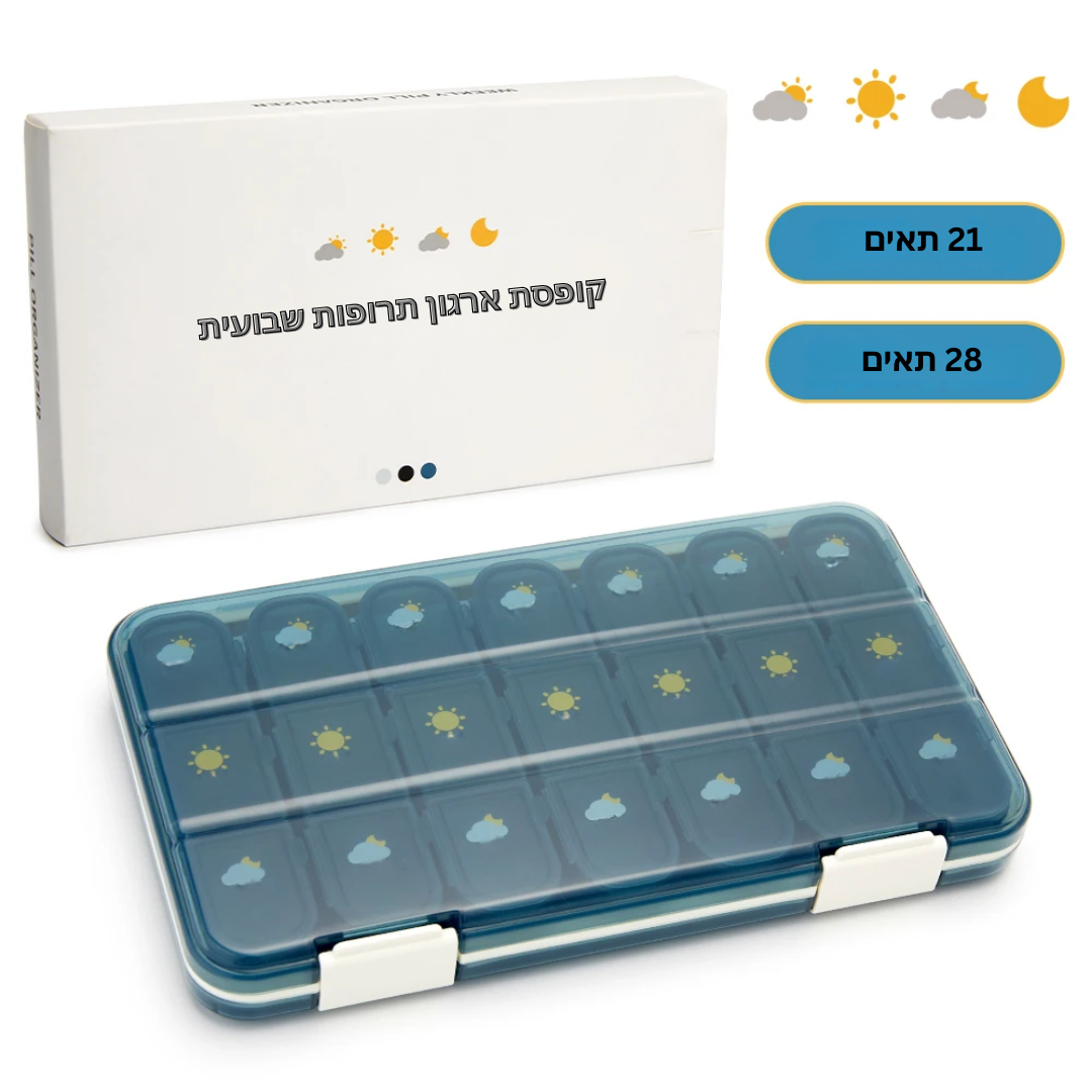 - מניעת טעויות: כל תא מסומן בבירור (למשל: ימים בשבוע, בוקר/ערב), כך שאפשר לדעת בקלות מה לקחת ומתי.